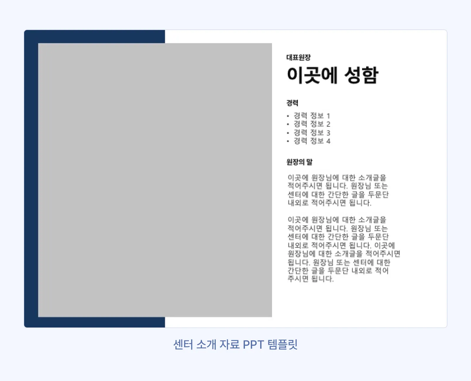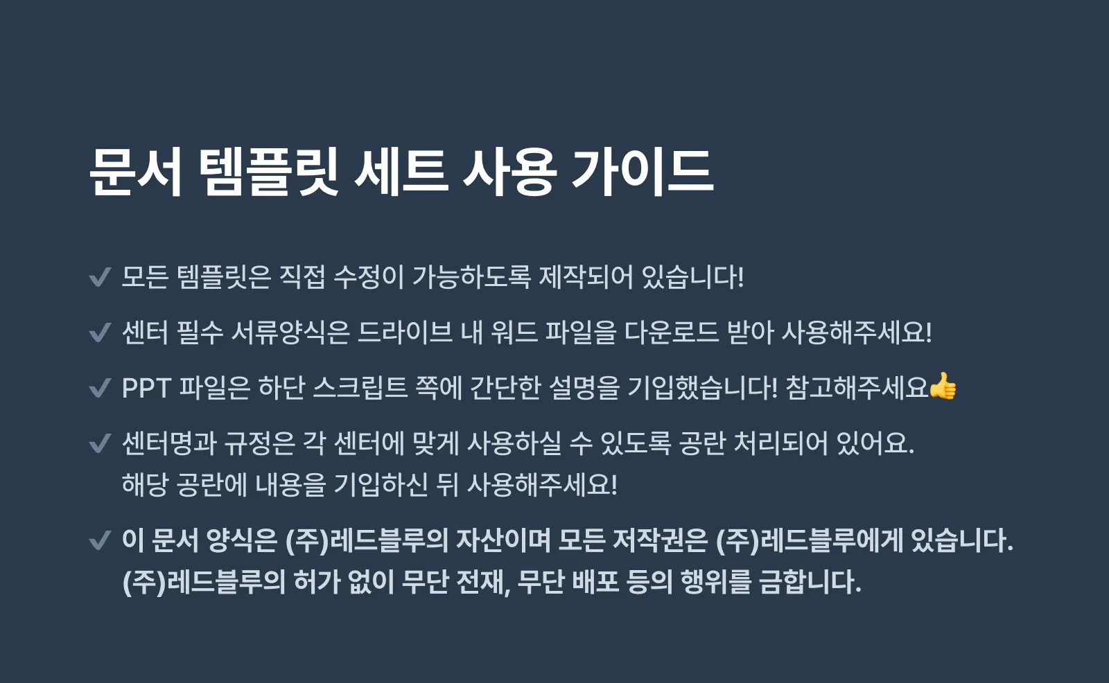 센터 소개 자료 PPT 템플릿 / 정지신청서 양식 / 연장신청서 양식