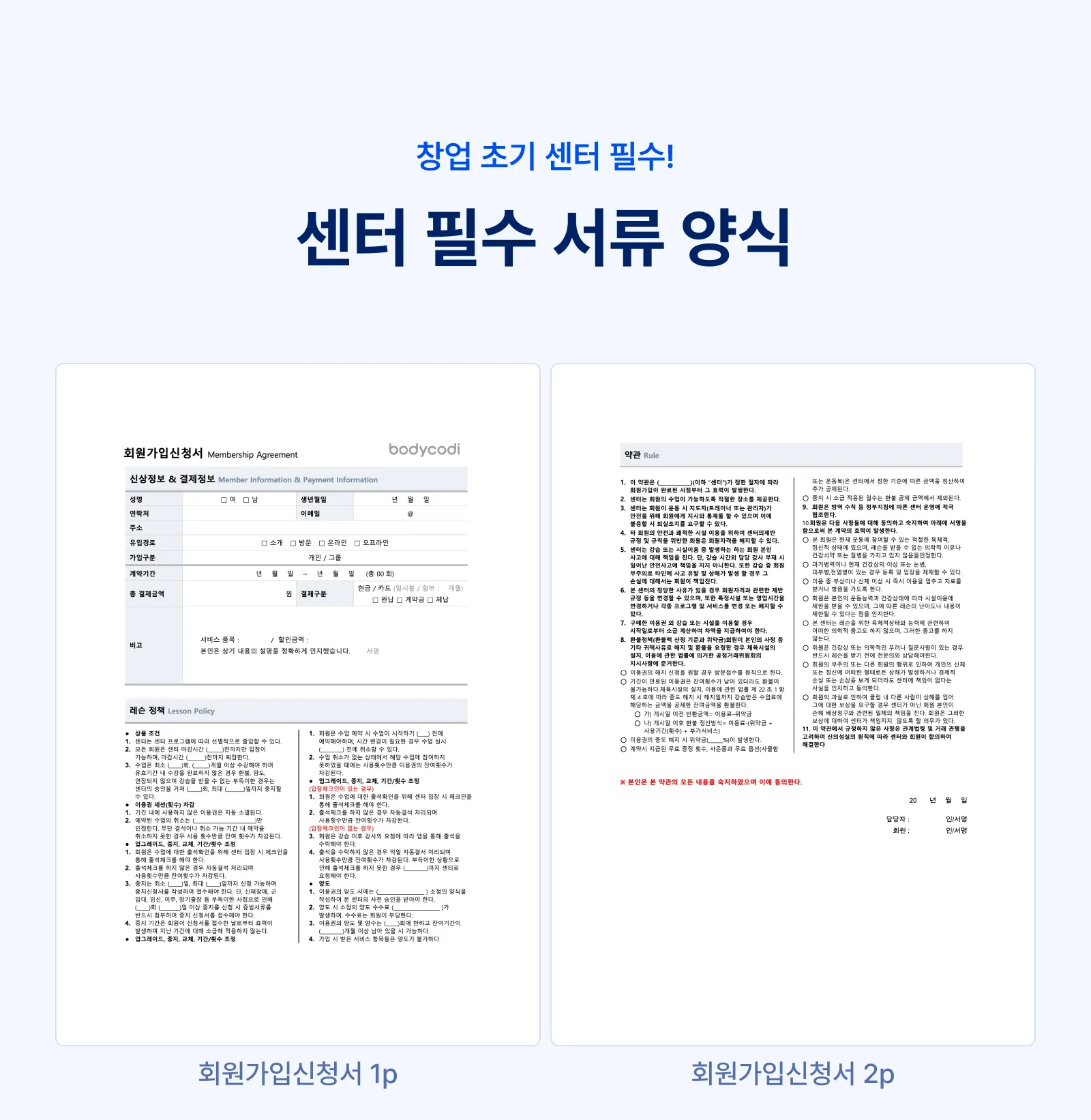 센터-회원 간 계약서 양식 / 문진표 양식 / 증상지도 양식