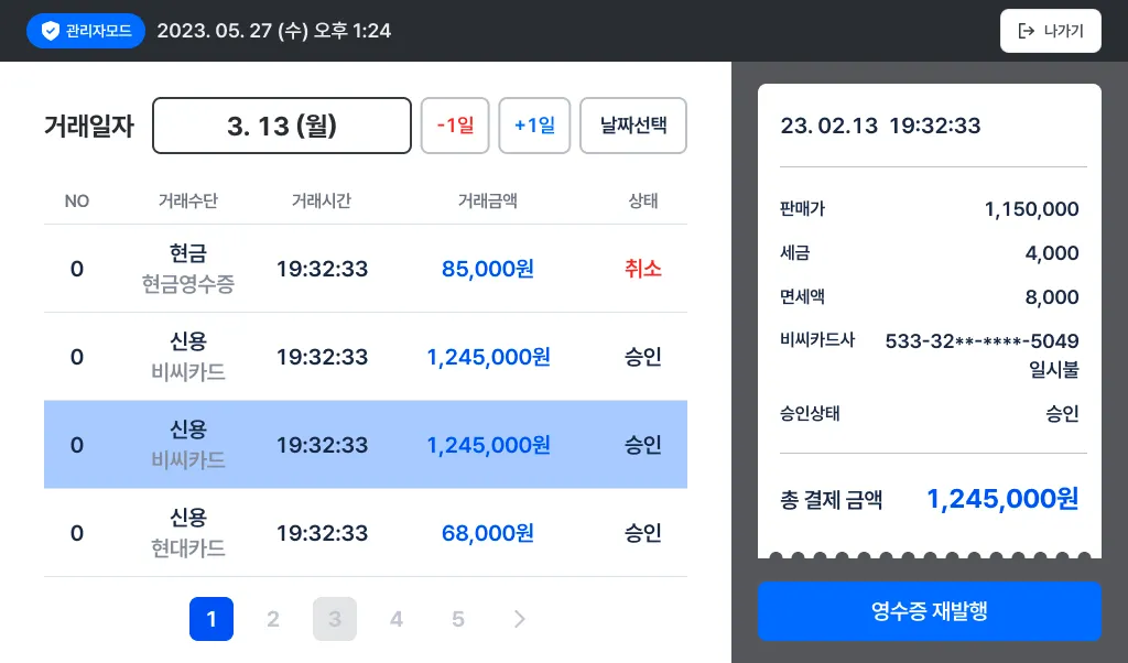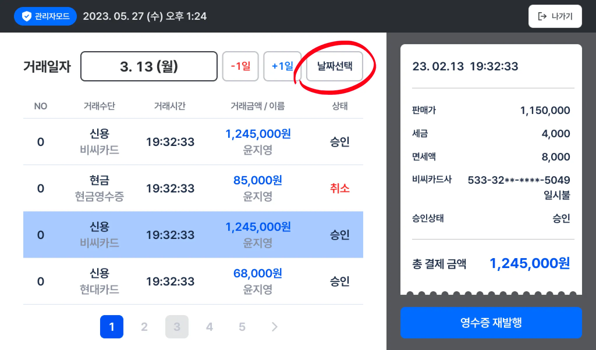 관리자모드에 ‘영수증 재발행’이 추가되었어요!