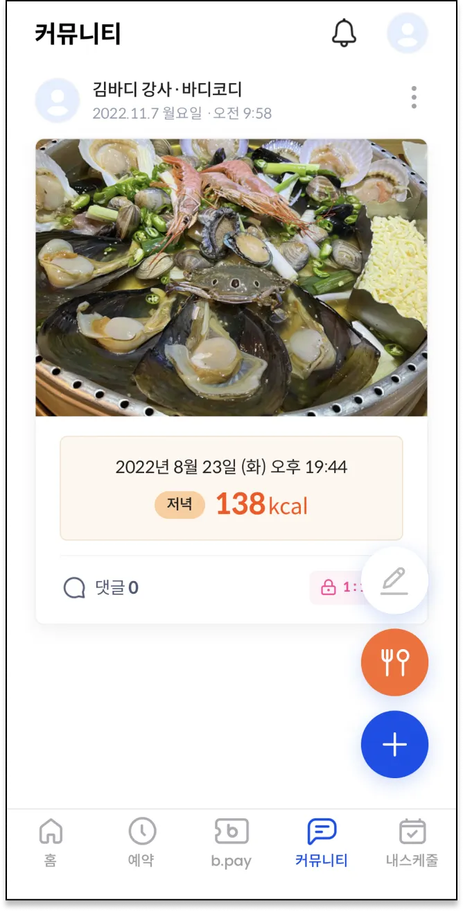 커뮤니티에 새로운 버튼이 추가되었어요! 바로 오늘 소개할 식단관리기능!