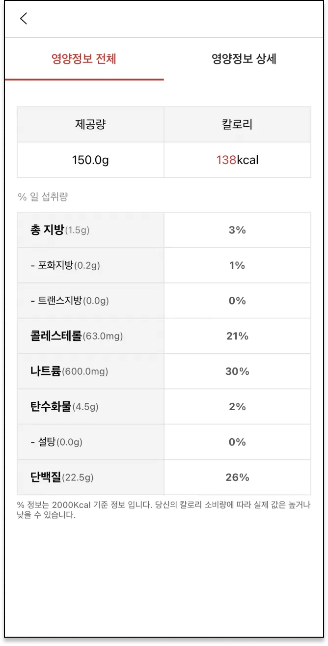 상세한 영양 정보를 확인할 수 있어요