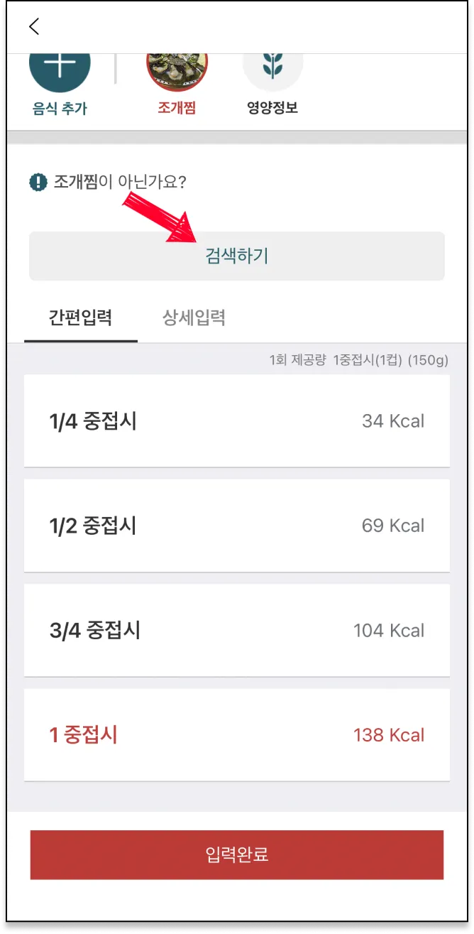 사진과 다른 음식으로 나온다면? 검색을 통해 수정할 수 있어요.