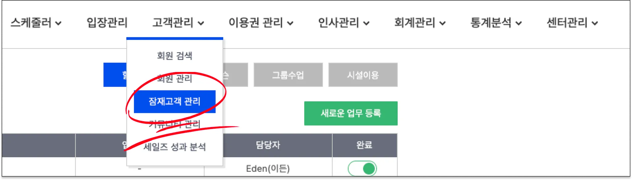 고객관리 > 잠재고객 관리에서 잠재고객을 등록하고, 관리할 수 있어요. 즉시 회원으로 전환할 수도 있답니다!