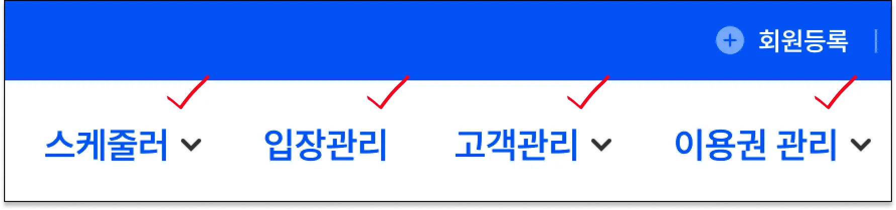 스케줄러, 입장관리, 고객관리, 이용권 관리 메뉴 이용 중 임직원을 변경해도 메뉴는 유지돼요!