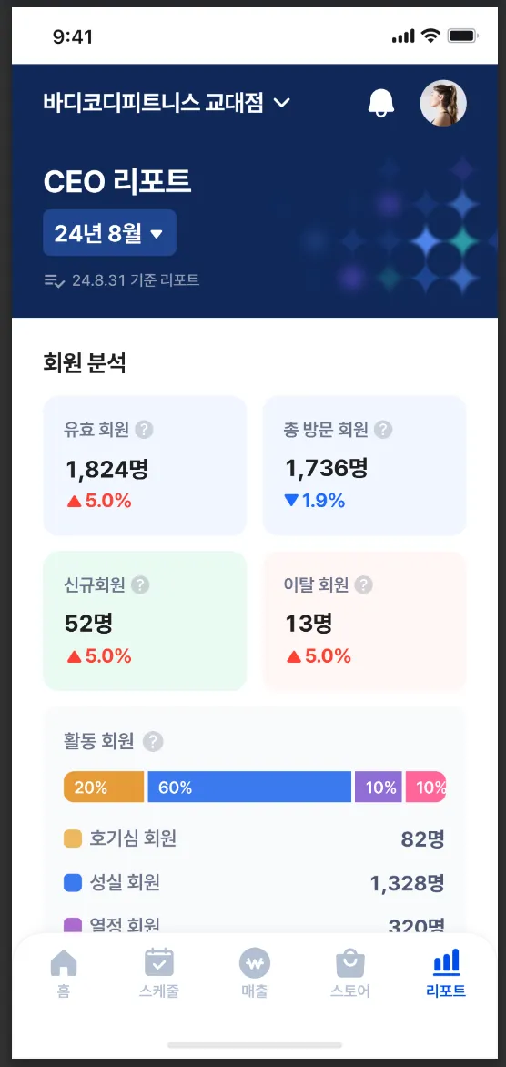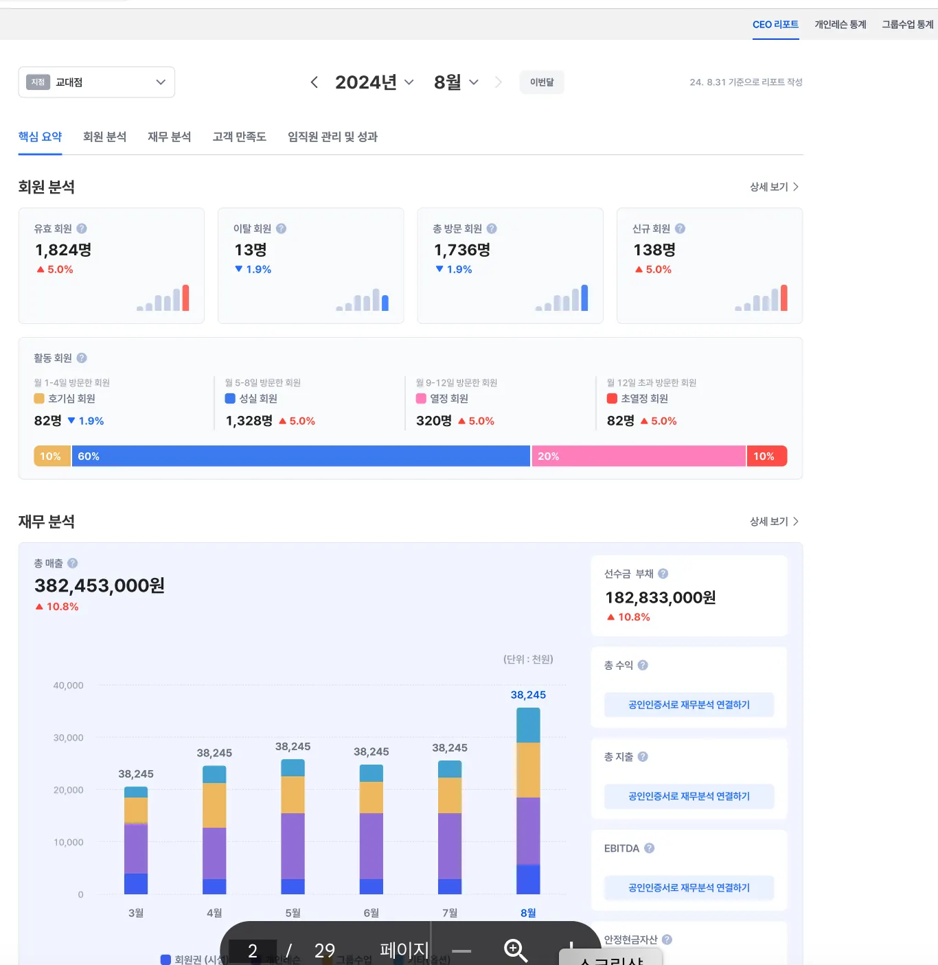 1. 피트니스 센터 사장님, 지점장님들을 위한 CEO리포트를 만나보세요.