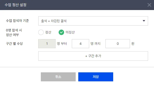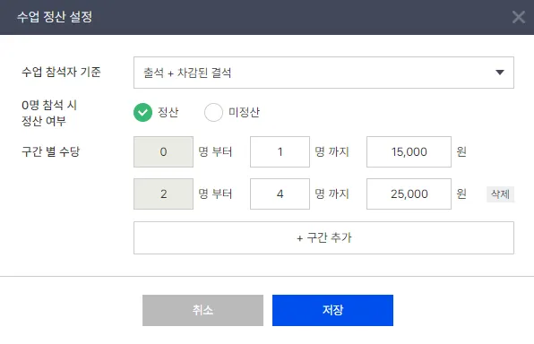 7) 수업정산 : 선생님 그룹수업 진행 시 정산 되는 급여 정보를 기입해주세요.