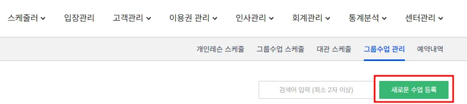 우선, 그룹수업 관리에서 신규 수업을 생성하고, 관리하는 방법부터 알아볼게요.