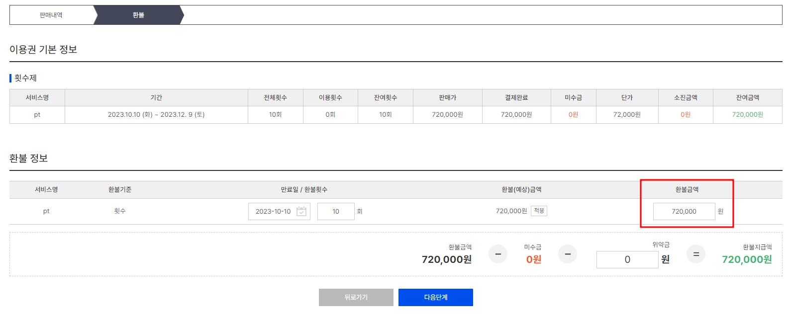2. 환불 금액 기입