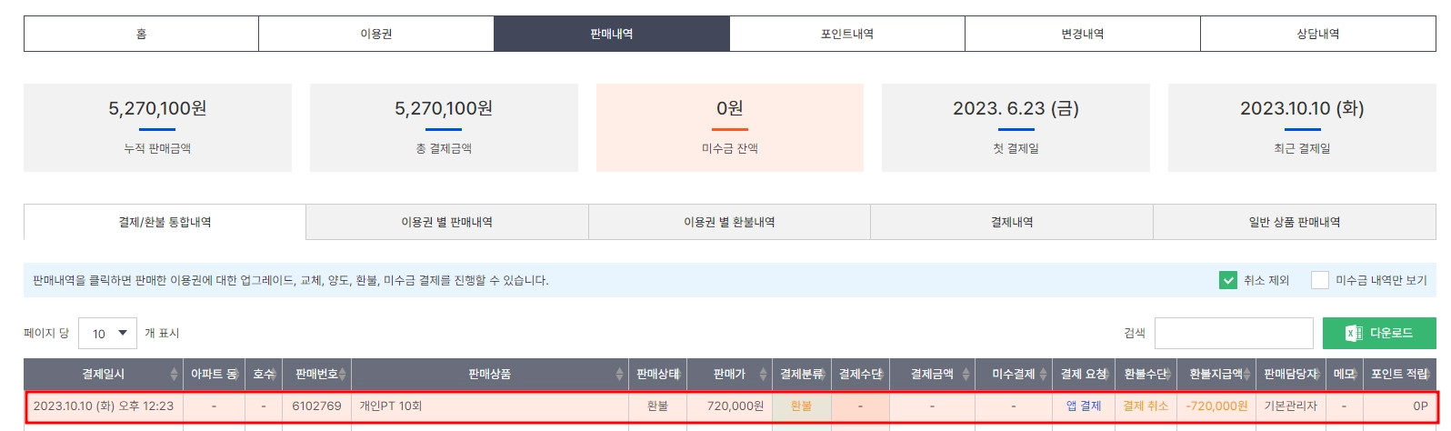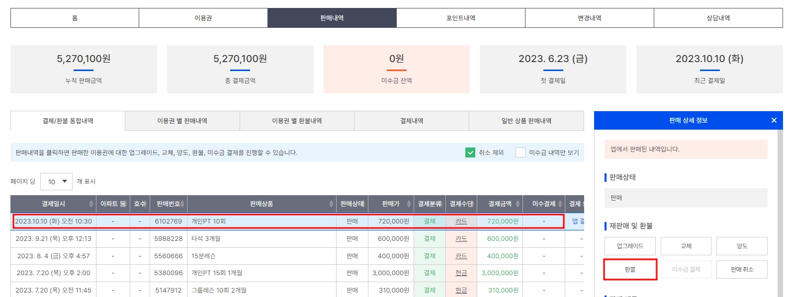 6. 환불 이력 확인