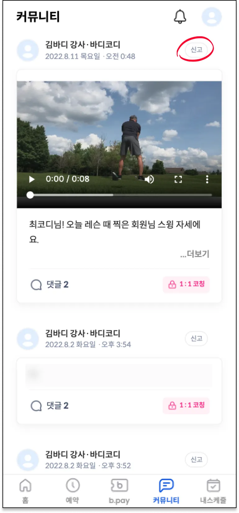 2. 회원앱 - 커뮤니티 신고하기 기능