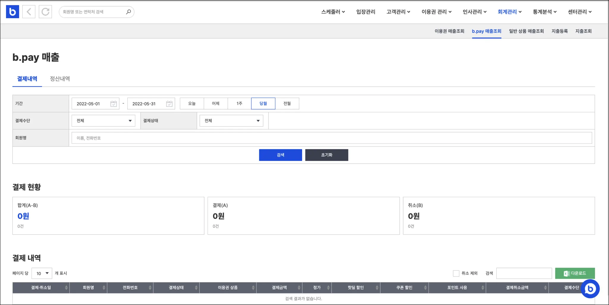 b.pay 매출 정산내역 기능