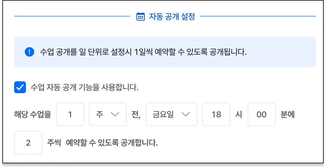원하는 공개 시점과 공개할 수업의 기간을 설정할 수 있어요!