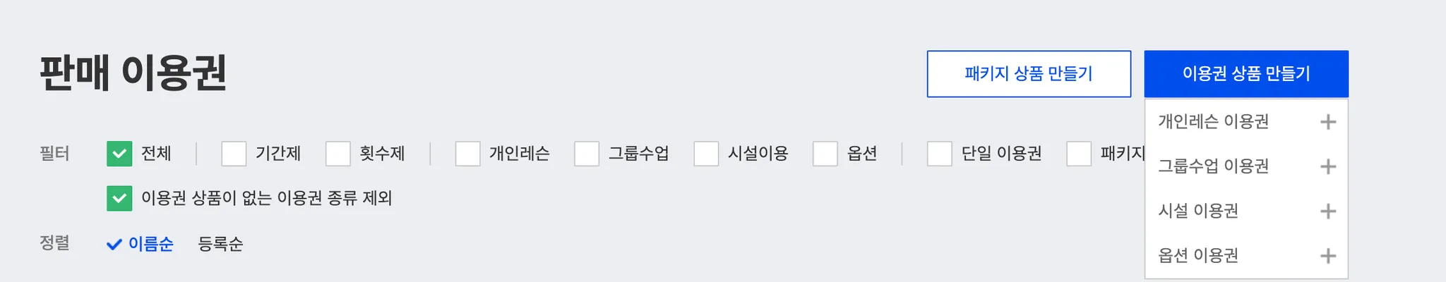 아래의 방법으로 센터만의 이용권을 만들 수 있습니다.