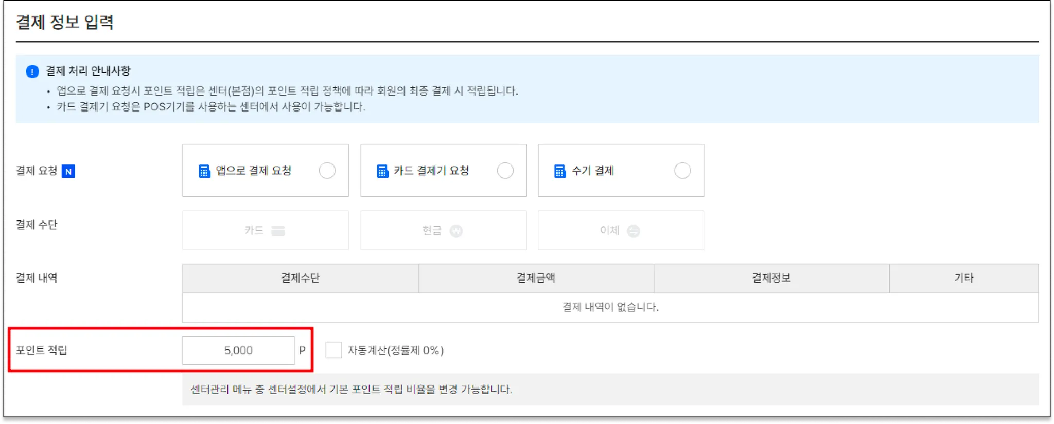 센터관리 > 센터설정 > 포인트 관리 >