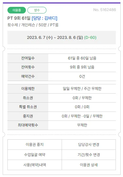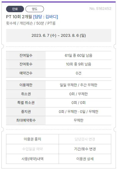 양도한 회원의 이용권