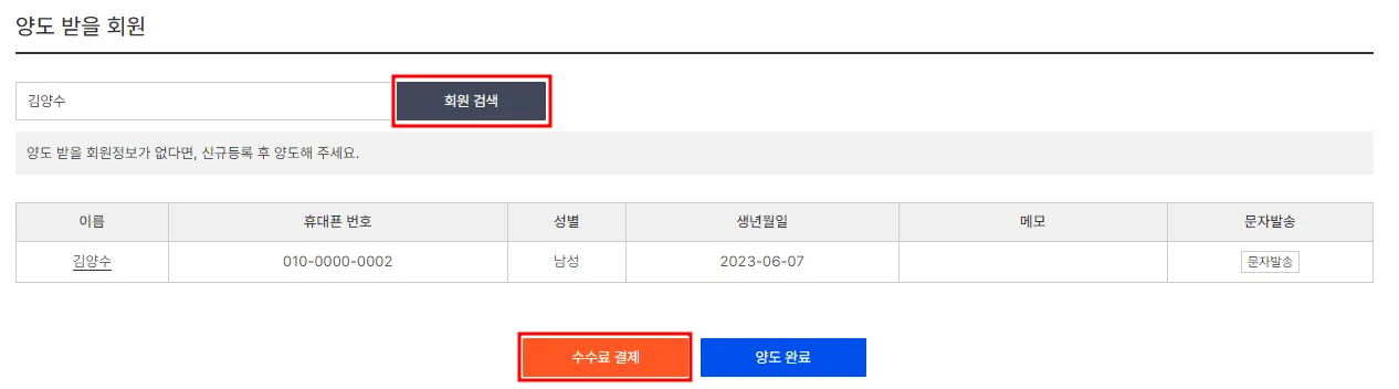 ※ 양도가 완료된 후에 수수료 결제가 필요하다면, 양도 취소 후에 결제해야하니 필요하다면