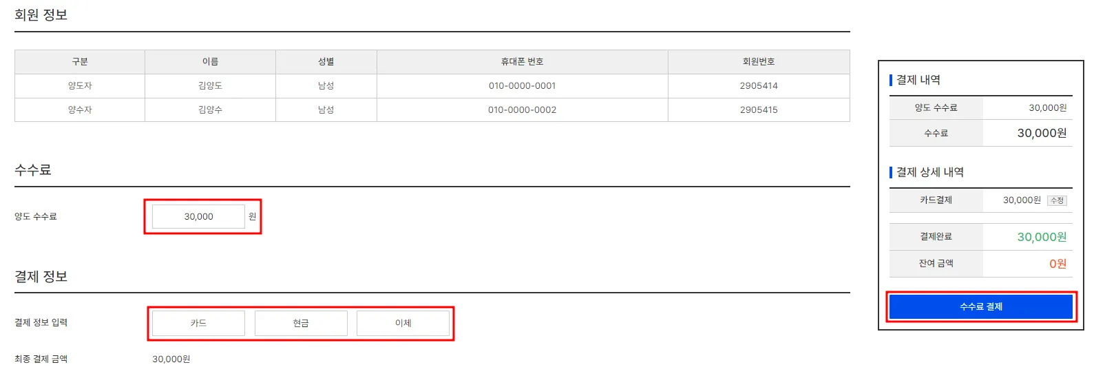 입력이 완료되었다면, 수수료 결제를 눌러주세요.