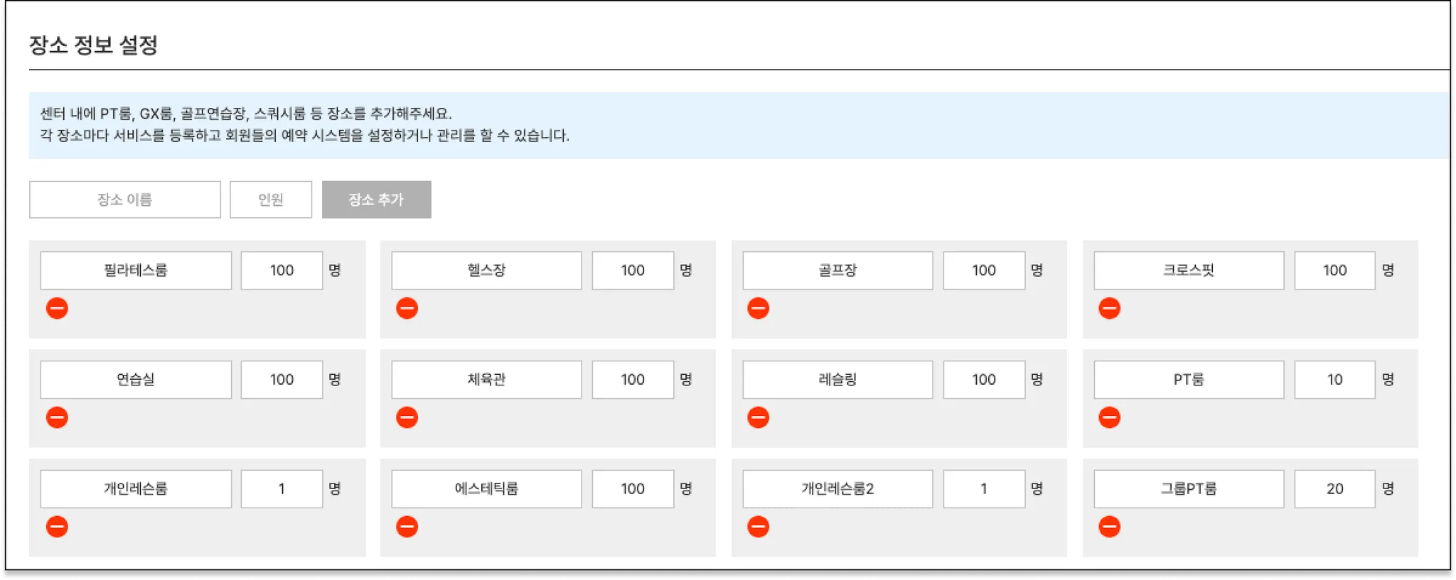 센터설정 > 운영 관리에서 장소 정보를 설정해주세요.