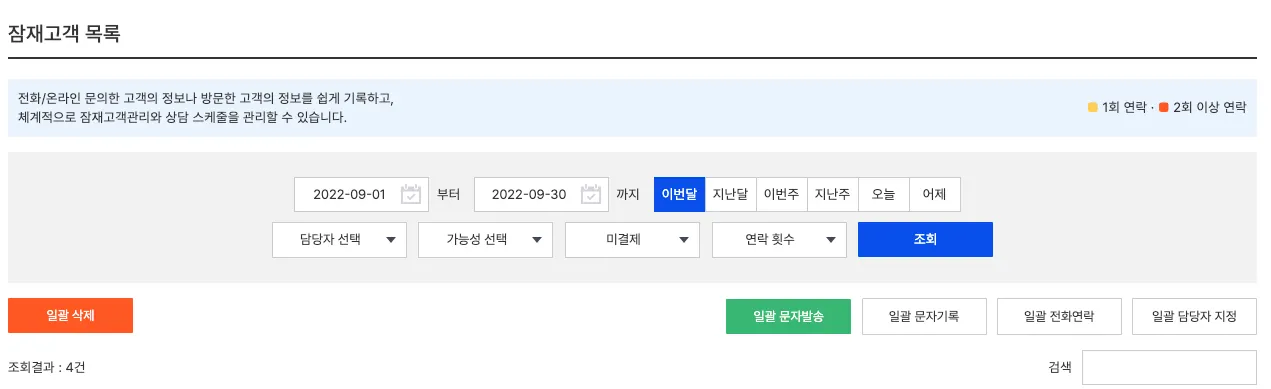 신규 잠재고객을 등록하고 관리하는 상황 별로 사용법을 설명 드립니다.
