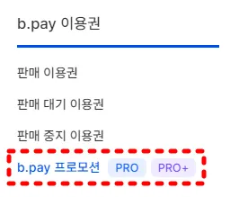 이용권 관리 → b.pay 이용권 → b.pay프로모션