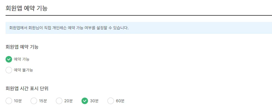 수업 예약가능한 시간 설정 : 강사의 개인레슨 가능 시간대에 시작 시간을 기준으로 얼마 전까지 예약할 수 있는지 설정하는 기능