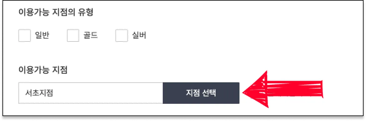 ‘지점 선택’을 눌러주세요. 지점 목록을 확인할 수 있어요.