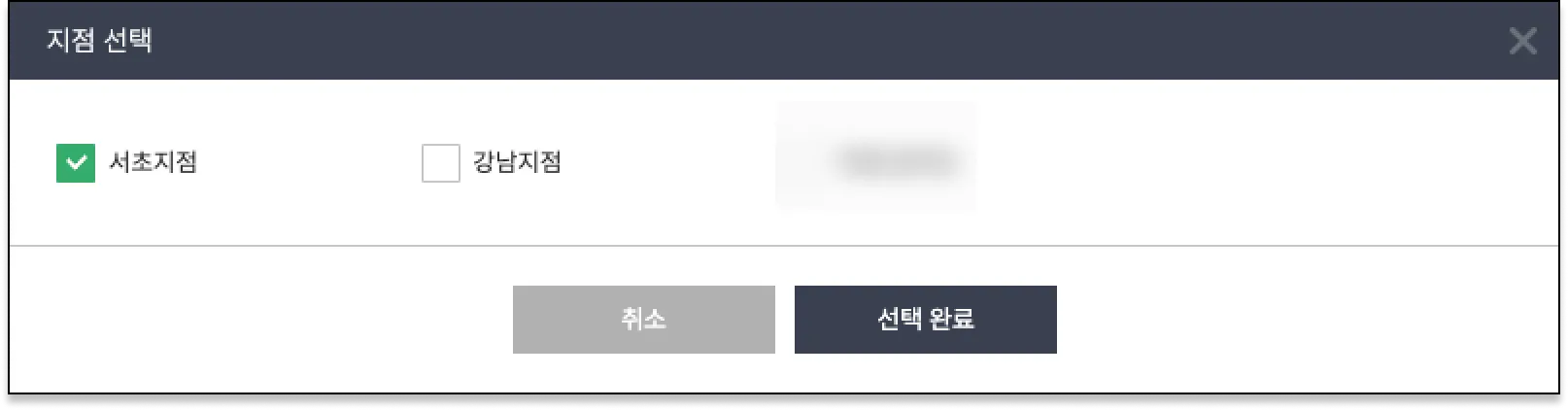 ❗️지점 계정으로 로그인하면, ‘내 지점’만 이용 가능한 지점으로 설정할 수 있어요.