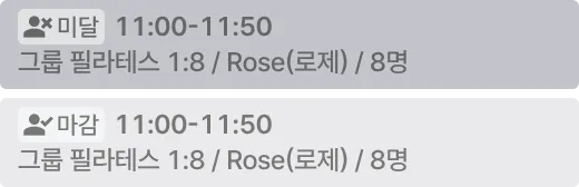 그룹수업 스케줄러 - 지난 스케줄 정원에 따른 색상 구분