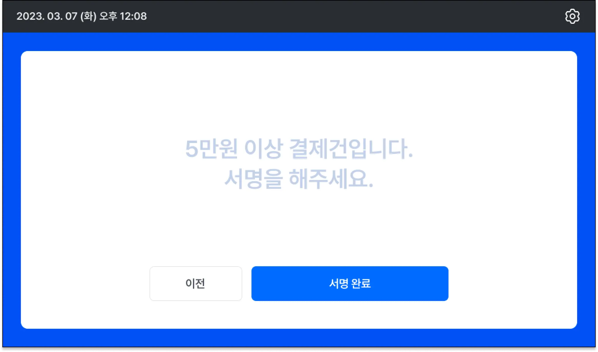 결제 금액이 5만원 이상일 경우, 서명이 필요합니다.
