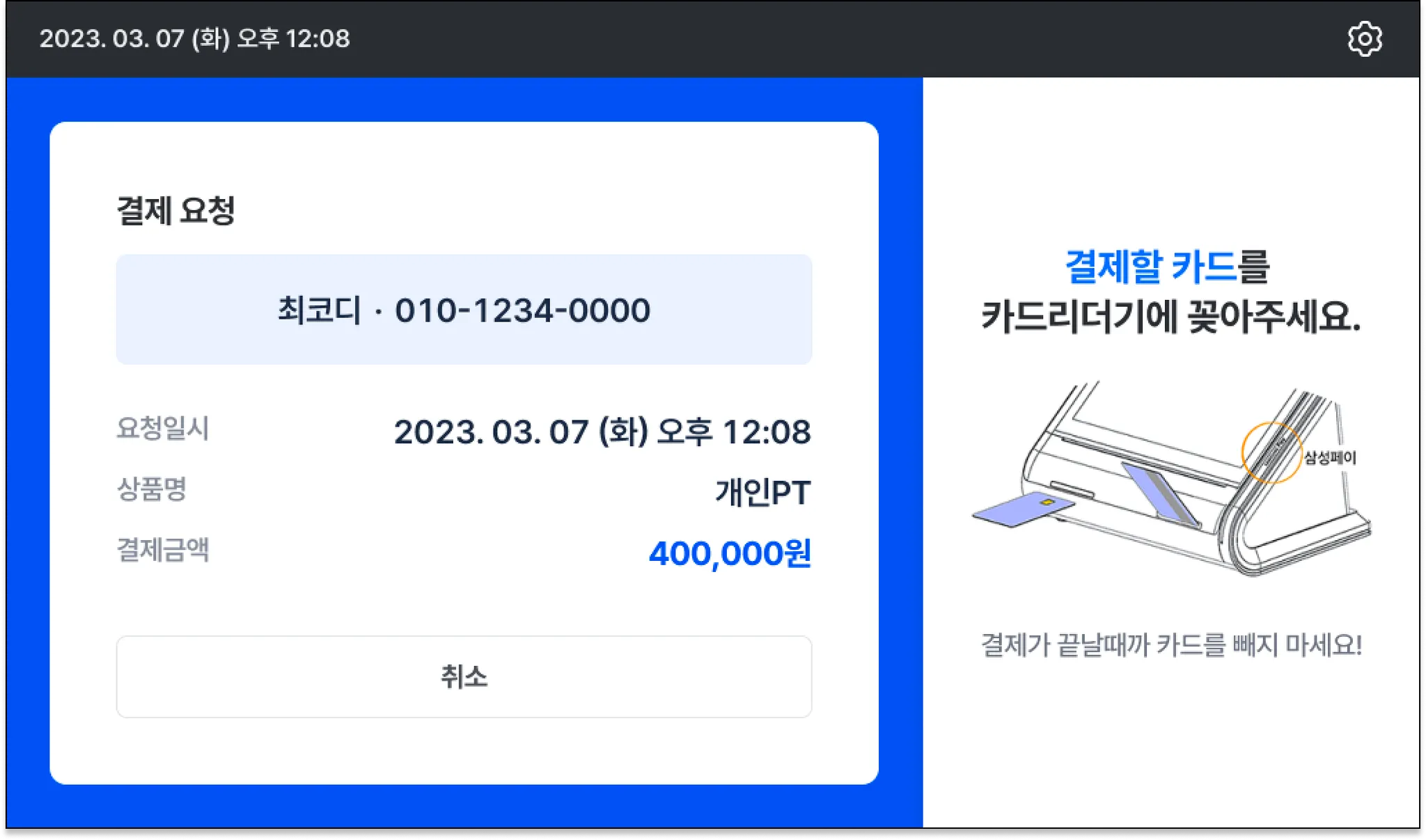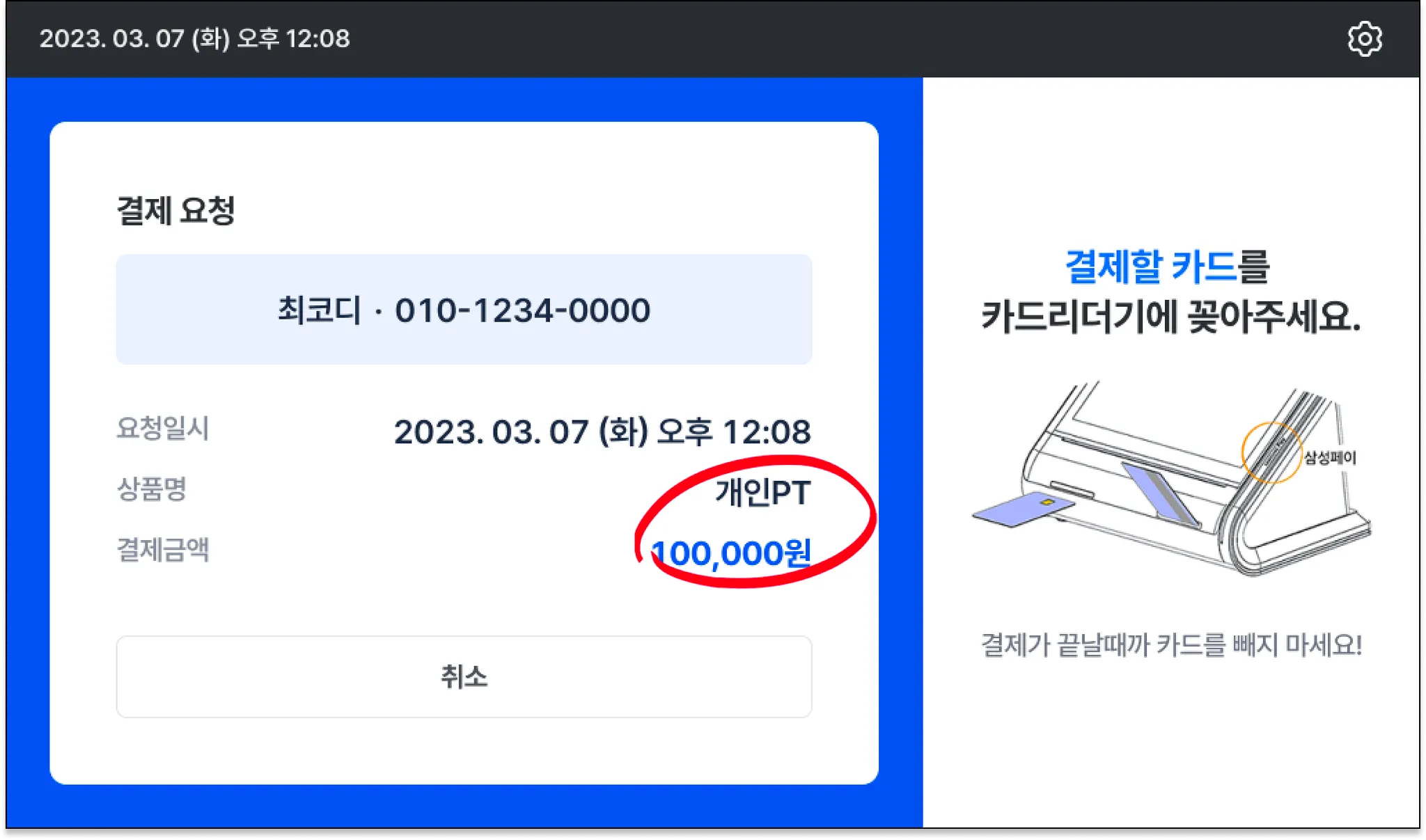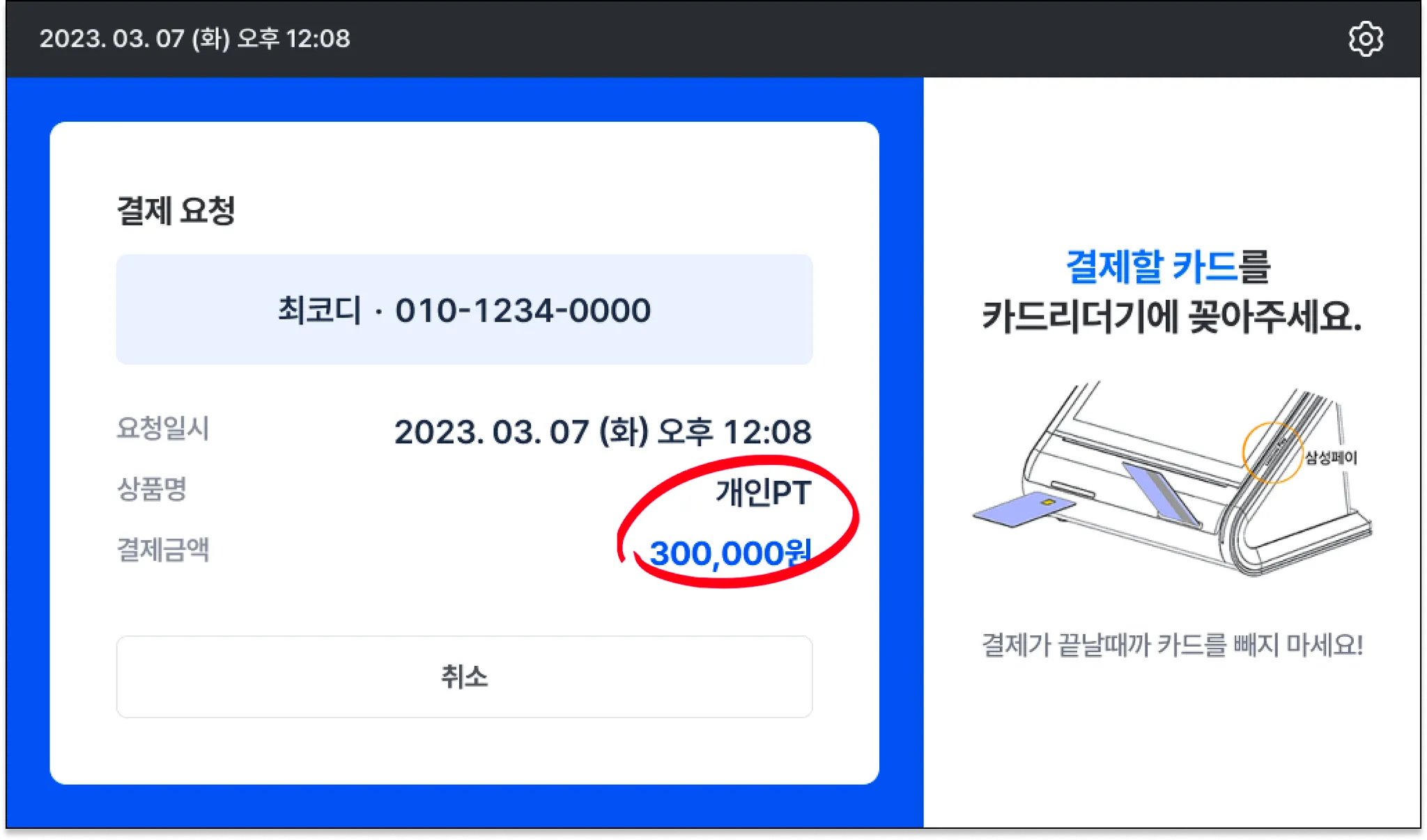 회원의 전화번호를 확인했으면, 이제 POS기에서 결제 요청 내역을 확인 후, 카드 결제하는 방법을 확인해볼게요!