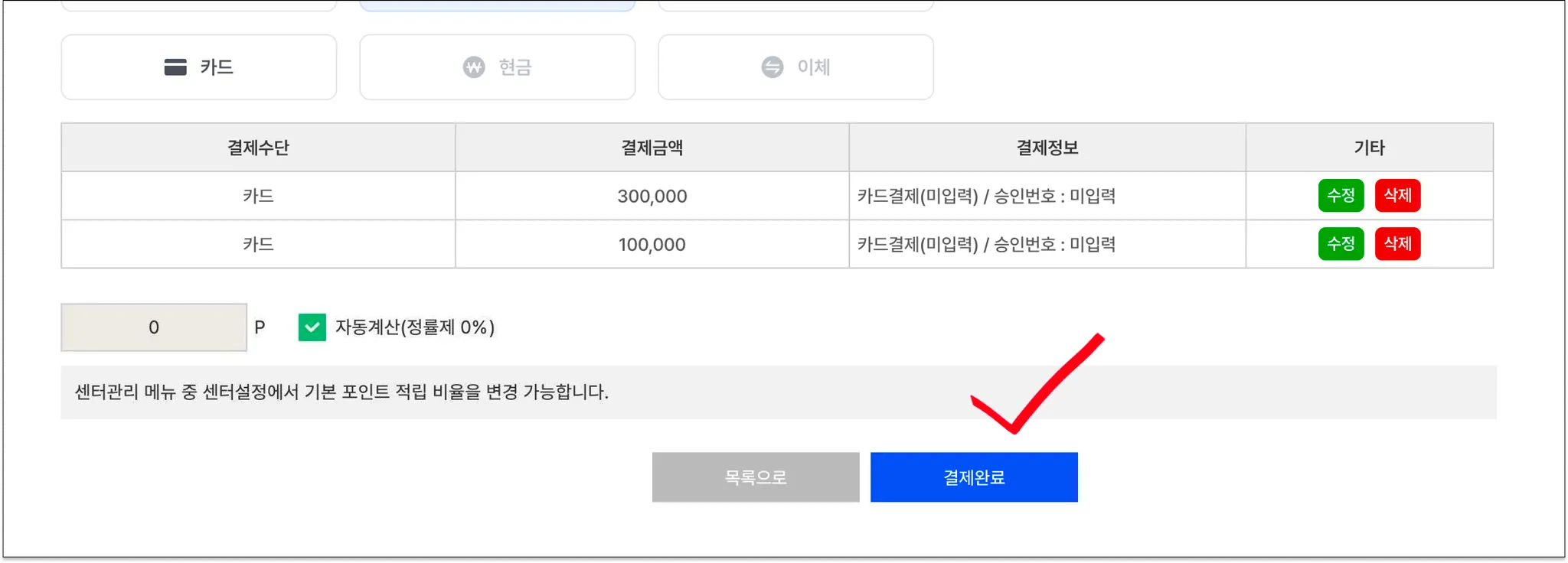이용권 판매 시 카드 + 현금 또는 카드 + 이체로 판매하는 방법은 ‘복합결제하기’에서 더 자세히 안내드릴게요!