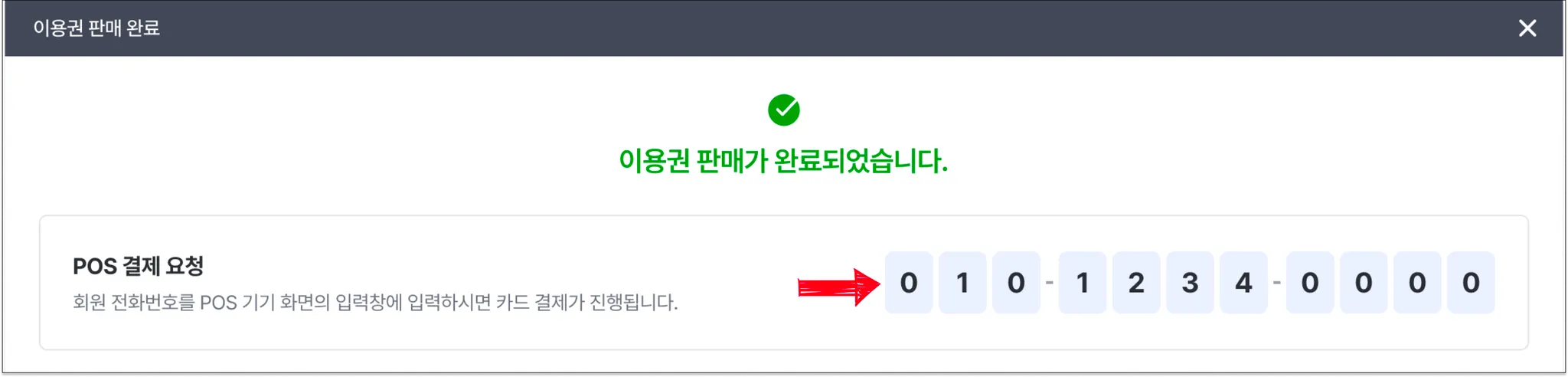 결제가 완료되면, 이용권 판매 내역과 함께 회원의 휴대폰번호를 확인할 수 있어요
