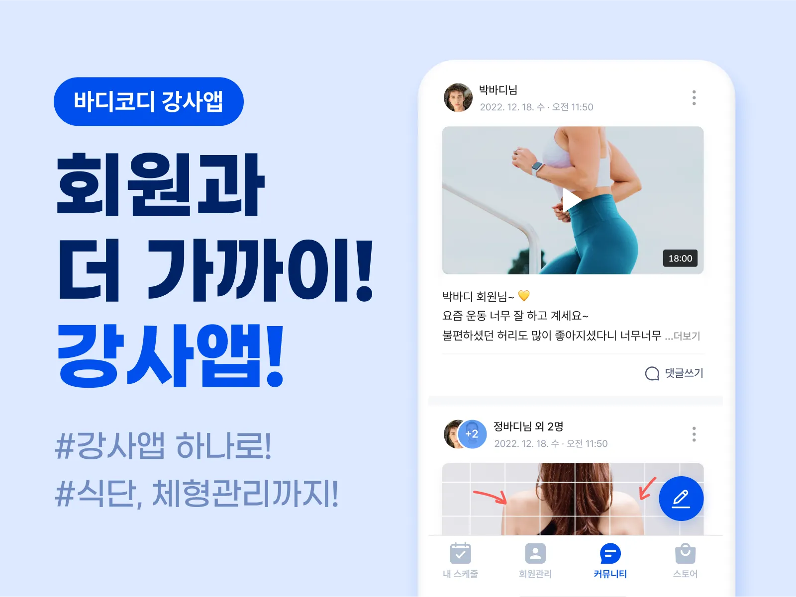 바디코디 앱에서 공유하기에 게시글 관리도 쉽고,