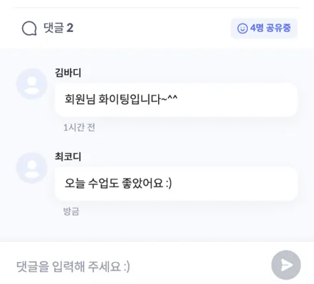→ 강사와 회원이 댓글로 실시간 소통하는 모습