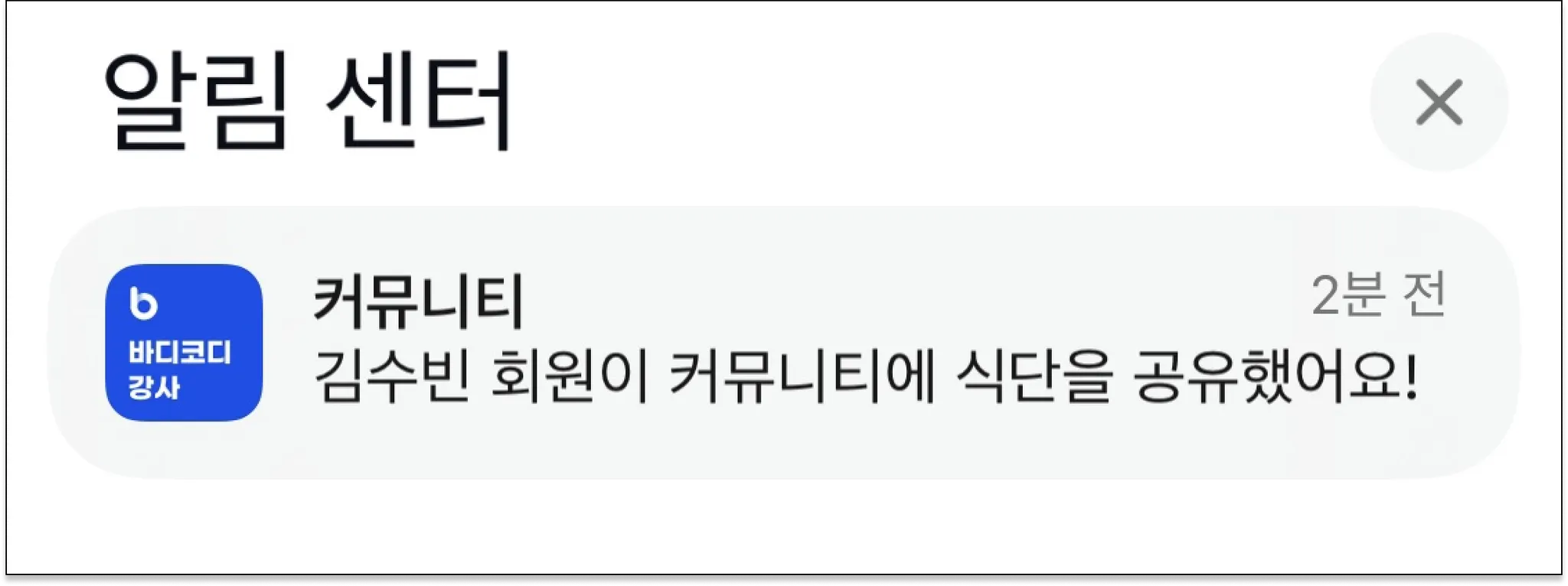 바디코디 회원앱에서 식단관리를 공유하는 방법은 공지에서 설명드렸어요.