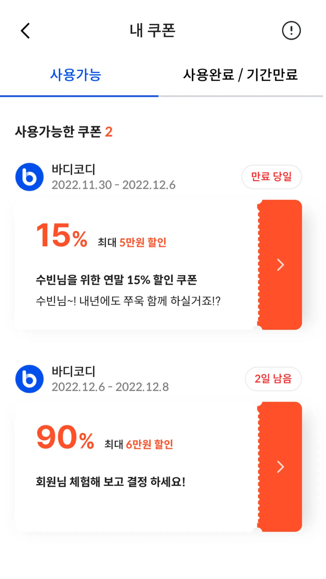 쿠폰함에 들어가면, 할인율과 만료일이 떠요!