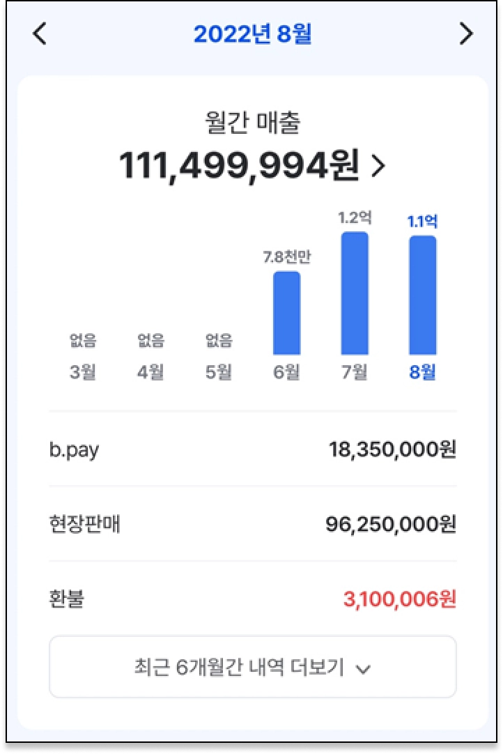 비페이와 함께 엄청난 매출 성장을 이루었어요.