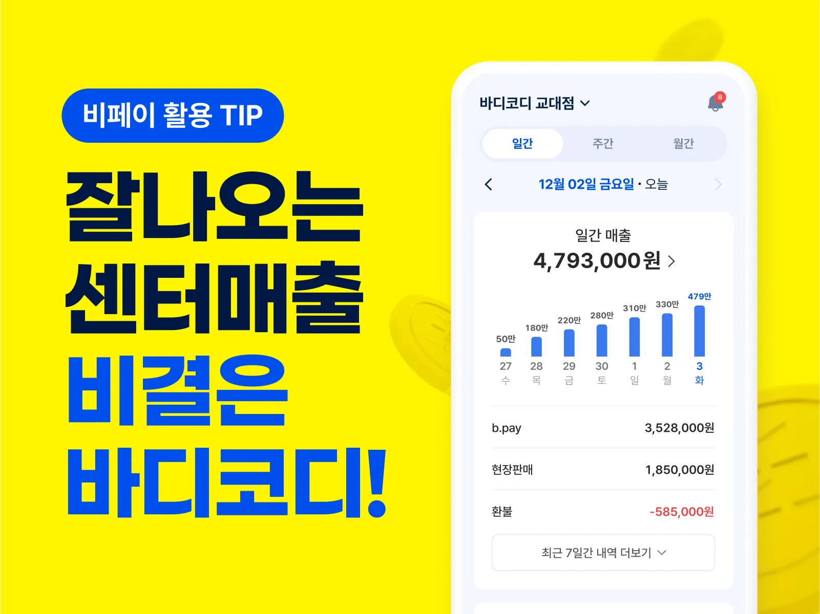 바디코디 앱을 사용하는 대표님 이라면, 비페이는 안 쓸 이유가 없겠죠?