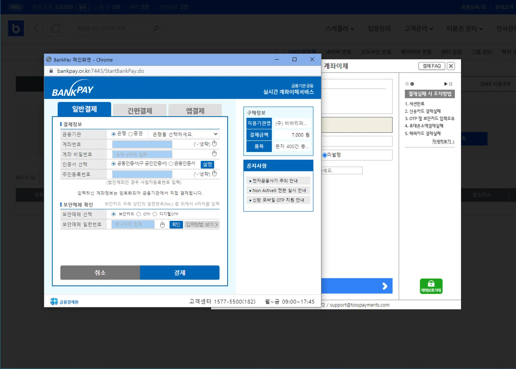 개인, 또는 개인사업자가 결제수단을 등록하여 카드결제 및 계좌이체할 경우