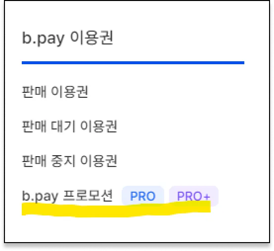 이용권관리 → b.pay 이용권 → b.pay 프로모션 메뉴에서