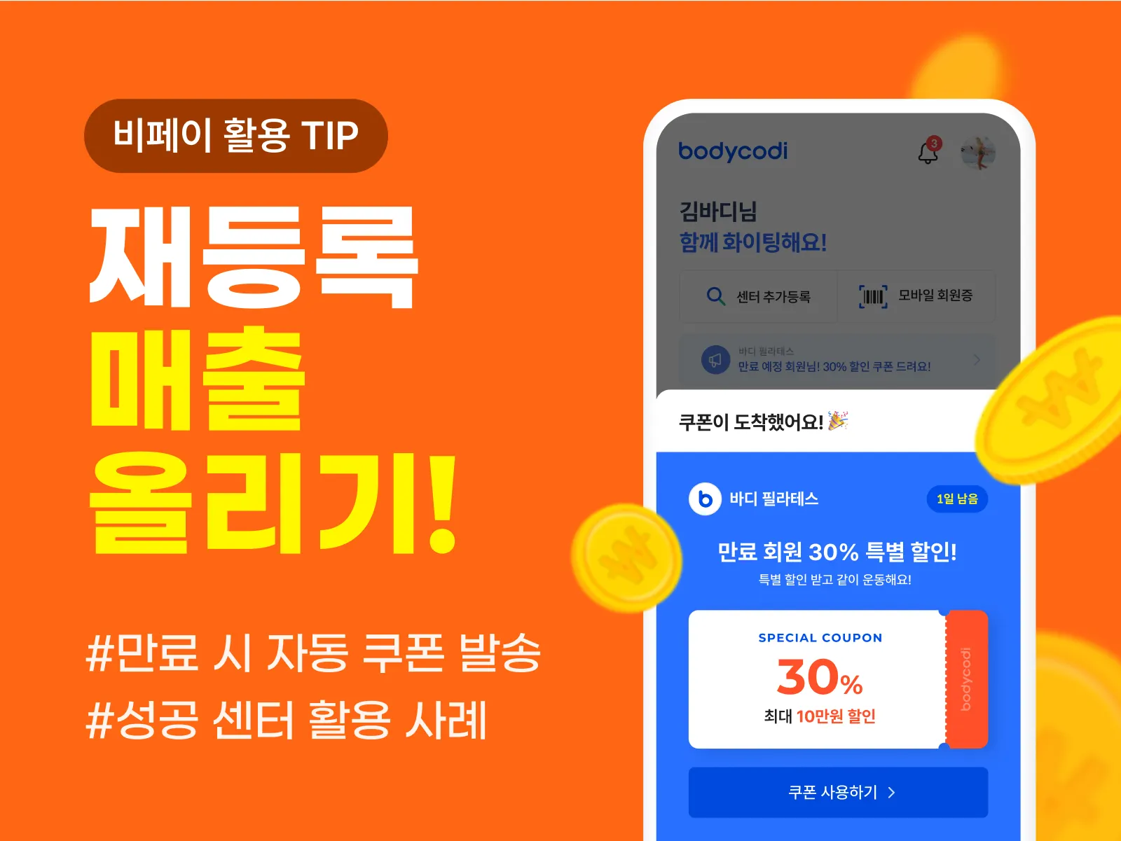 자동으로 재등록 할인 혜택 쿠폰을 전송할 수 있어요