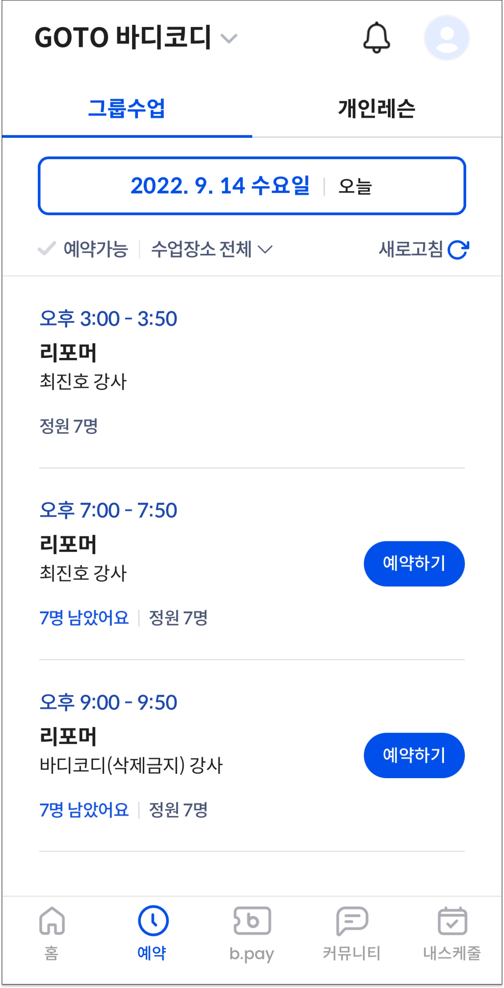 1. 그룹수업 예약하기