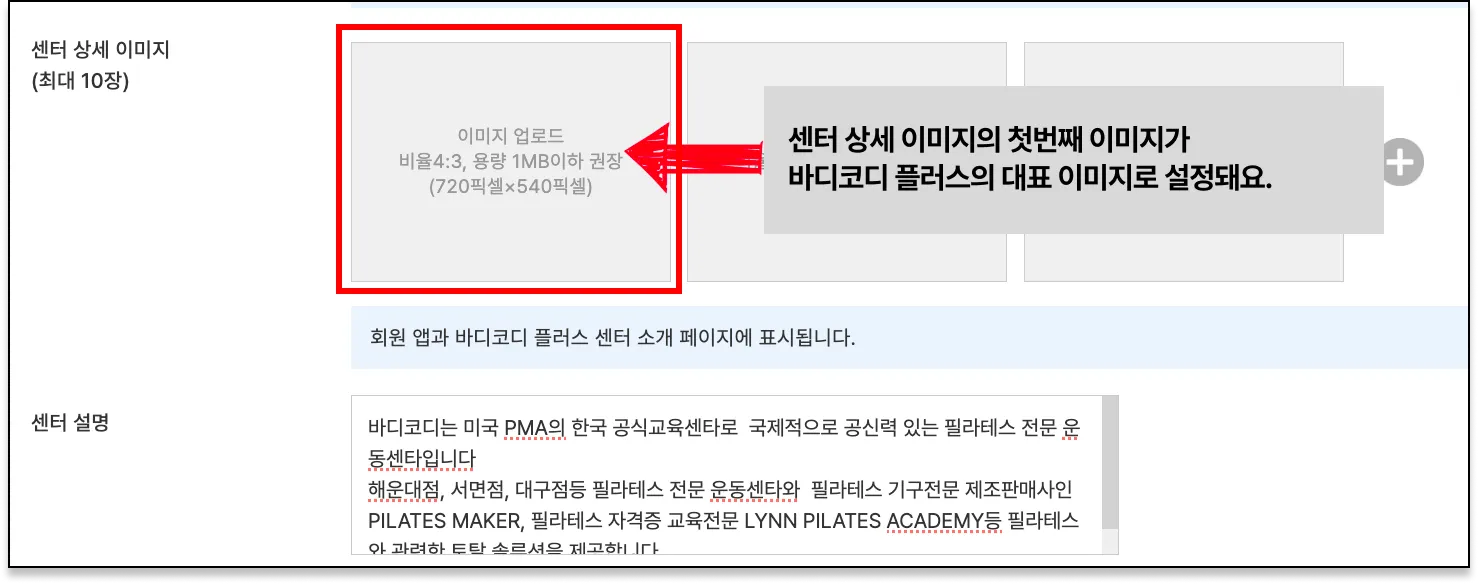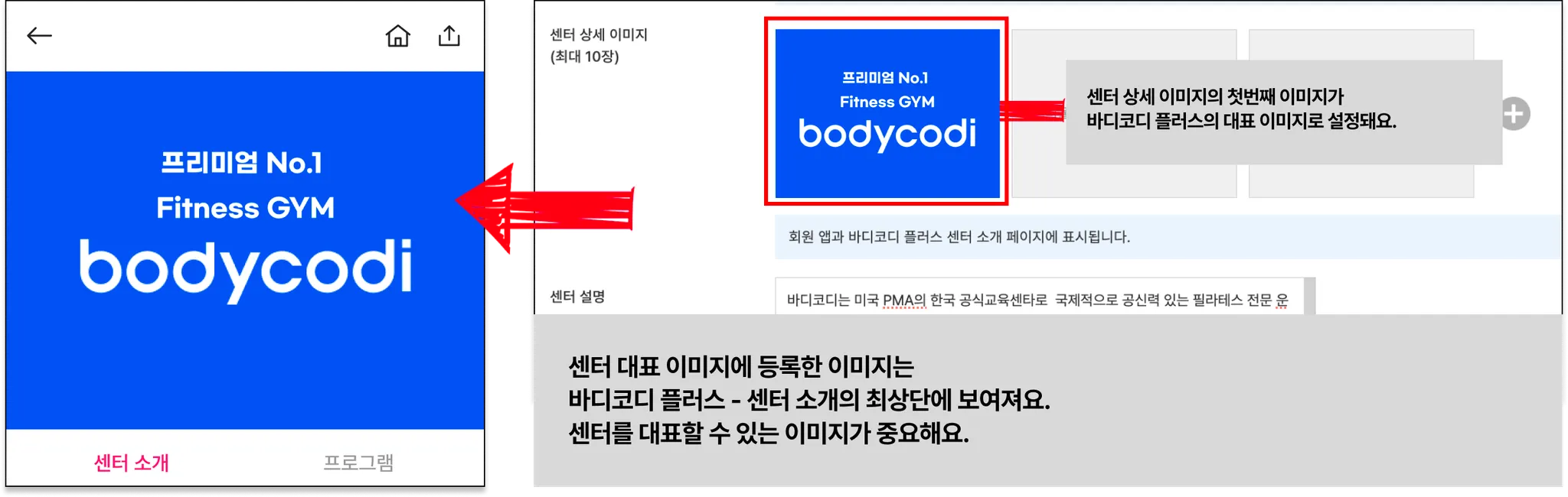 [바디코디 플러스] 센터 소개 페이지 - 메인 이미지 설정 변경