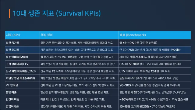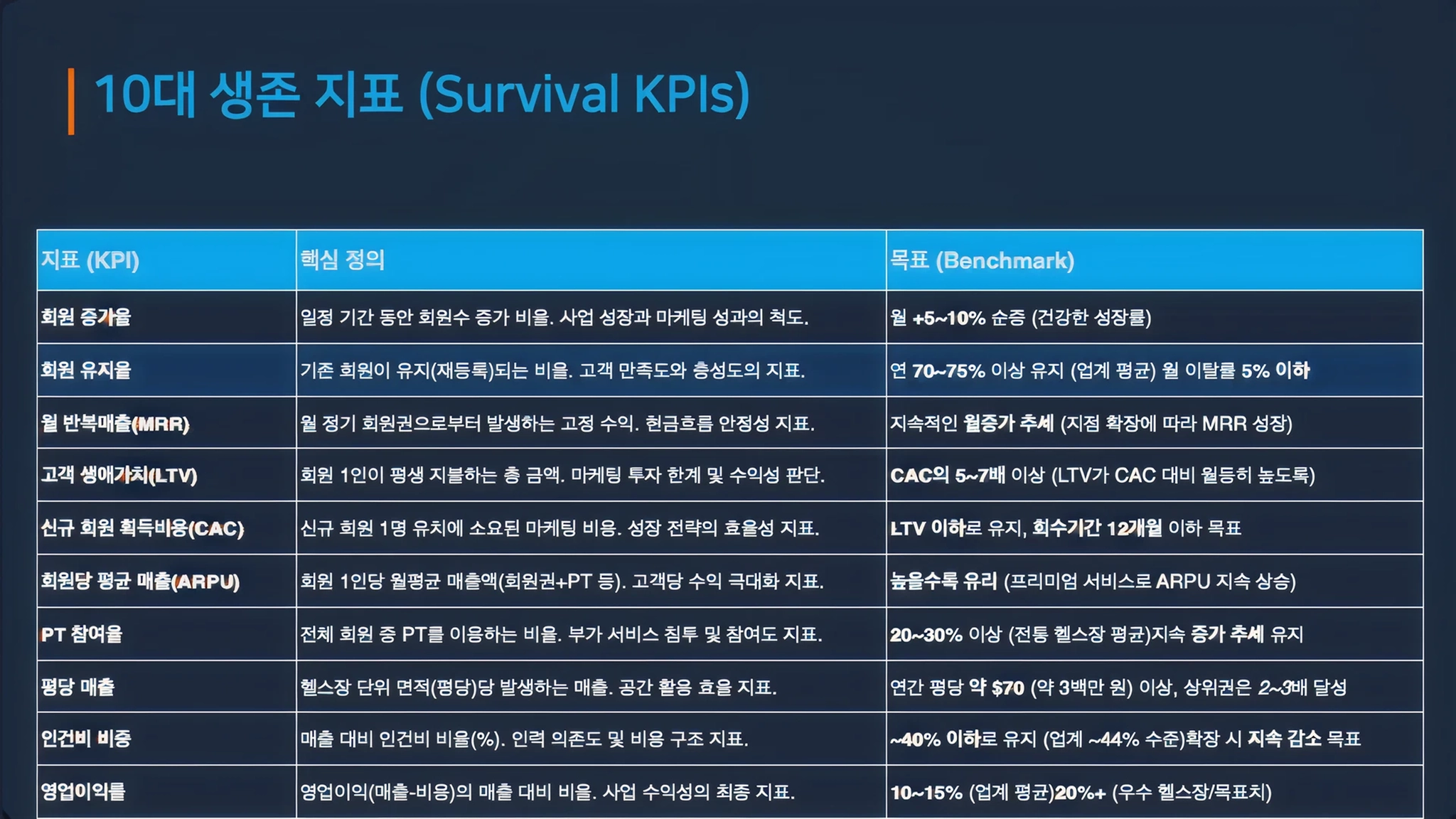 더 나아가 피트니스의 본질 가치를 높이기 위한 더 중요한 지표를 추적하고 우리만의 방식으로 숫자를 만들어내는 것이 경쟁에서 이기고, 지속 가능한 브랜드를 구축하는 현실적인 방안이 될 것 입니다.