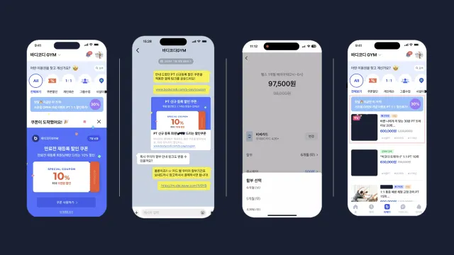 그리고 앱으로 매번 다른 팝업 광고를 띄우고, 사전 재등록 할인이나 PT 할인 쿠폰을 보내고 프로모션 상품을 알렸습니다.