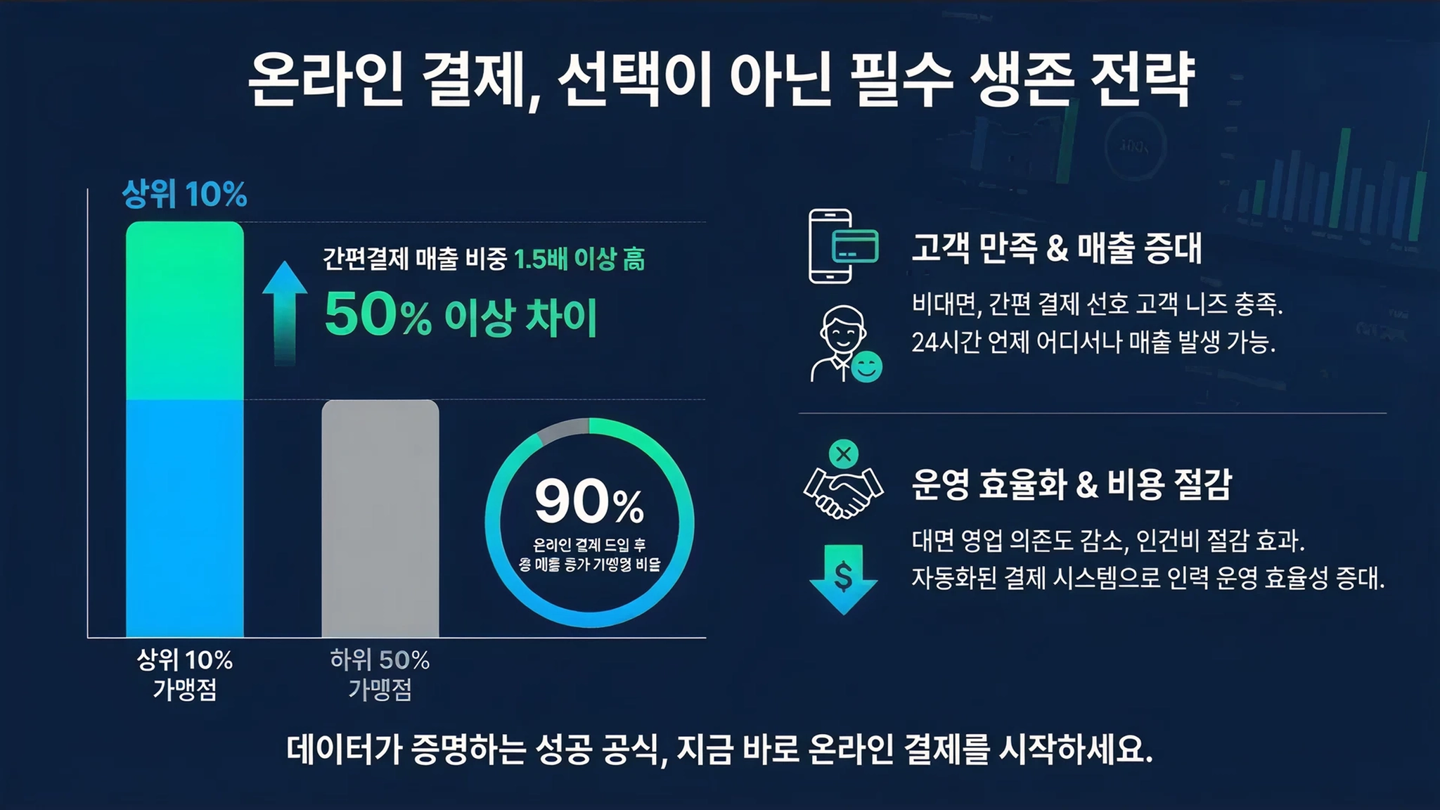 데이터는 온라인 결제 비중이 높을수록 매출이 상승함을 증명하고 있습니다.