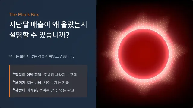 침묵하고 떠나는 이탈회원, 보이지 않는 비용들, 성과를 알 수 없는 광고와 마케팅 활동들과 싸워야 합니다.