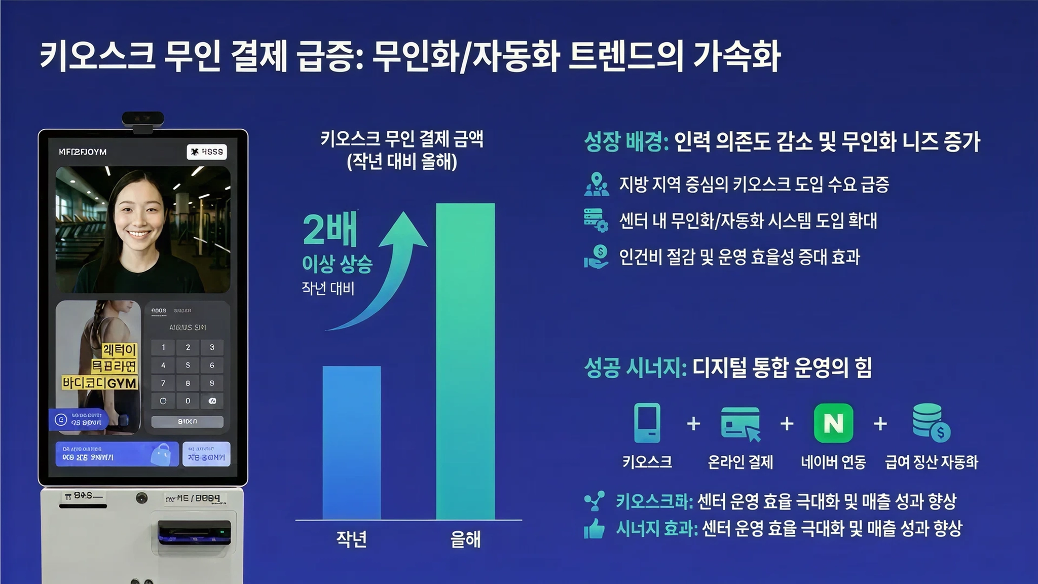 특히 인력 수급이 어려운 지방 지역을 중심으로 키오스크와 자동 출입 통제 시스템 도입이 빠르게 확산되고 있으며, 이는 운영비용 절감과 직결됩니다.