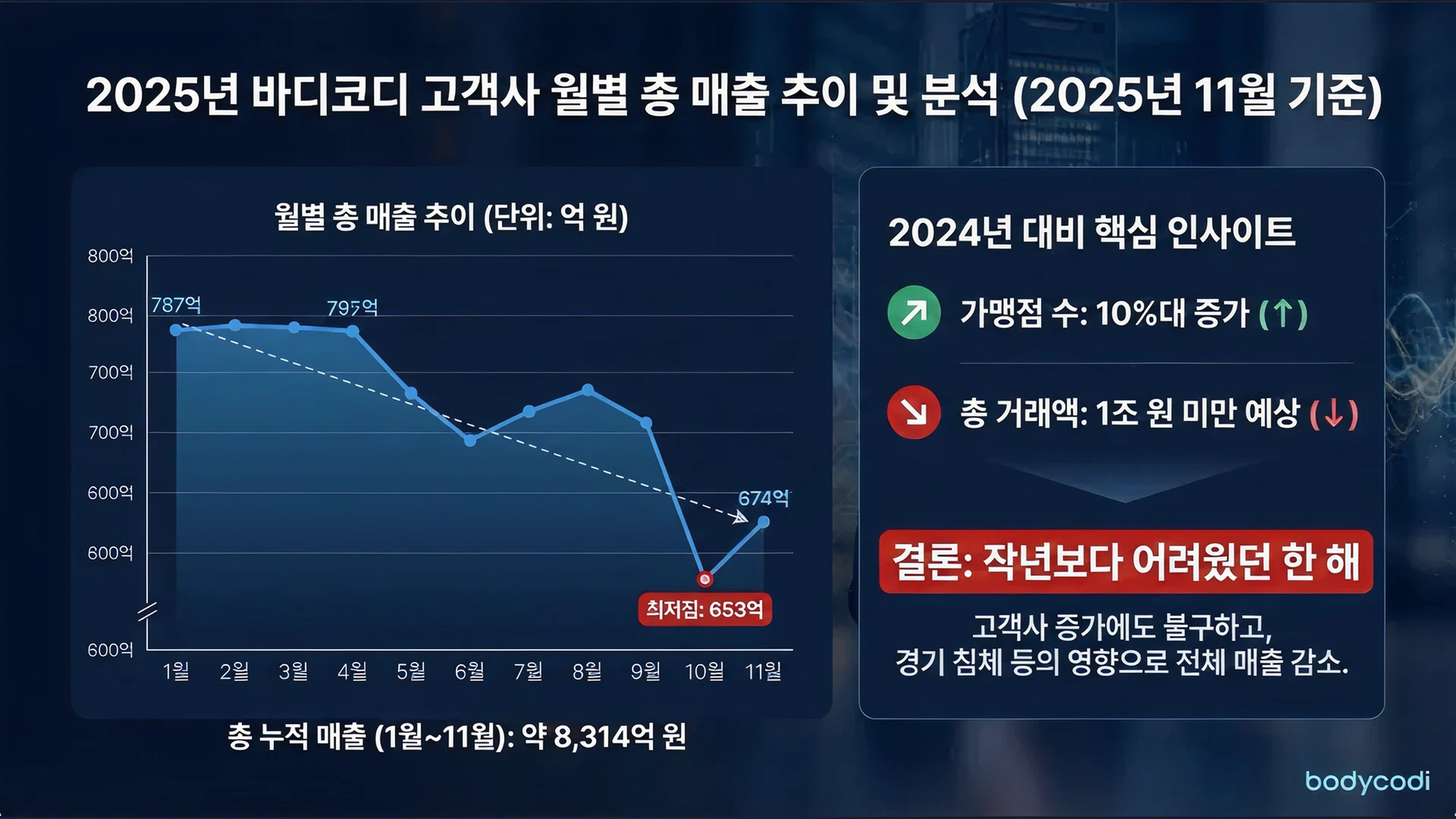 본 리포트는 전국 3,500여 개의 바디코디 가맹점 데이터를 분석하여, 2025년 한국 피트니스 시장의 현주소를 진단하고 지속 가능한 성장을 위한 '데이터 기반 의사결정' 가이드를 제시합니다.