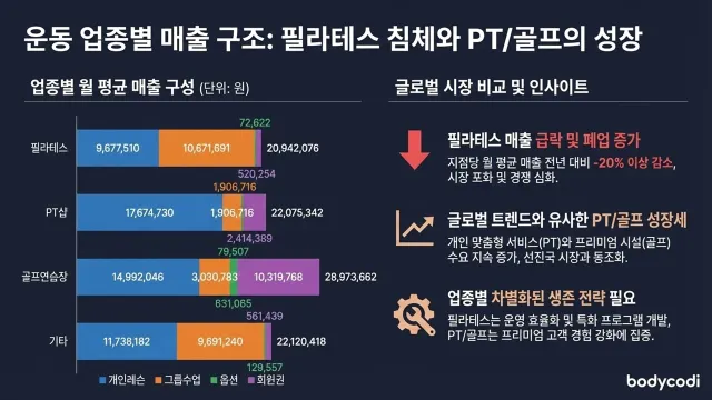 필라테스는 PT 그룹 할 것 없이 전체적인 매출 하락.